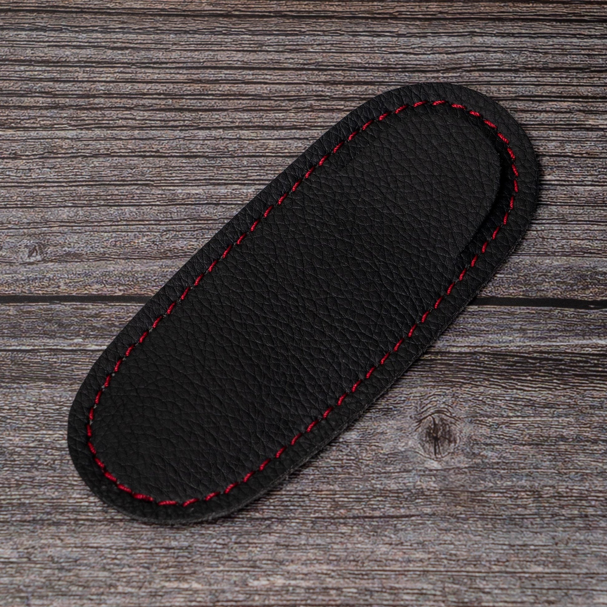 Descubre la funda de navaja perfecta que combina estilo, funcionalidad y protección. Confeccionada en skay negro de alta calidad, cada modelo presenta un diseño elegante y distintivo, acentuado por detalles en hilo rojo que añaden un toque de sofisticación. Estas fundas son ideales para quienes buscan un accesorio que no solo resguarde su navaja, sino que también la haga lucir bien.